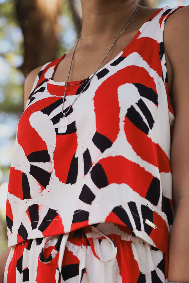 O traço traz de forma subjetiva a sinuosa beleza das cobras corais, um símbolo de energia,